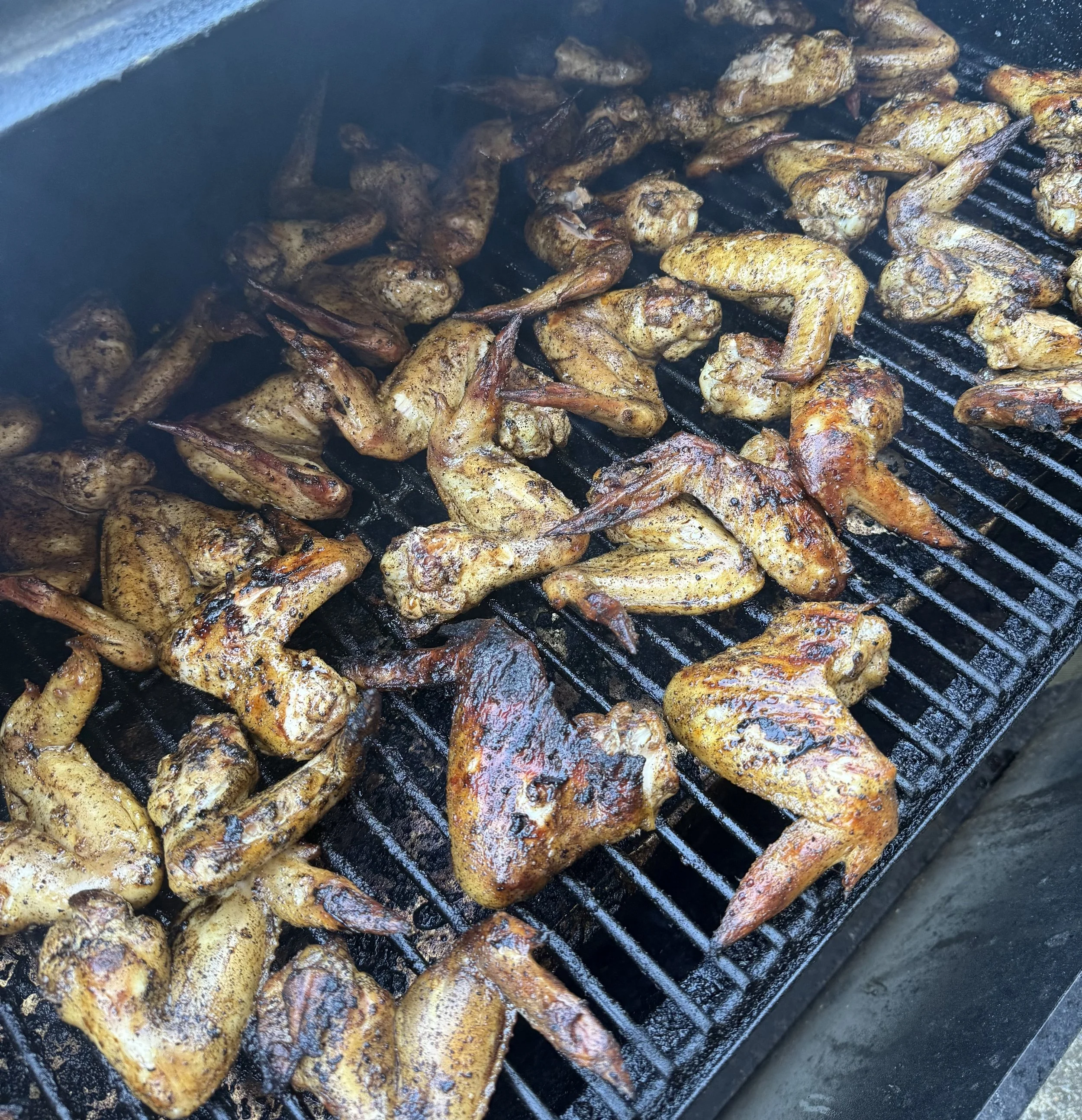 Take 2 lbs of chicken wings and marinate them in this mix for 30-60 mins